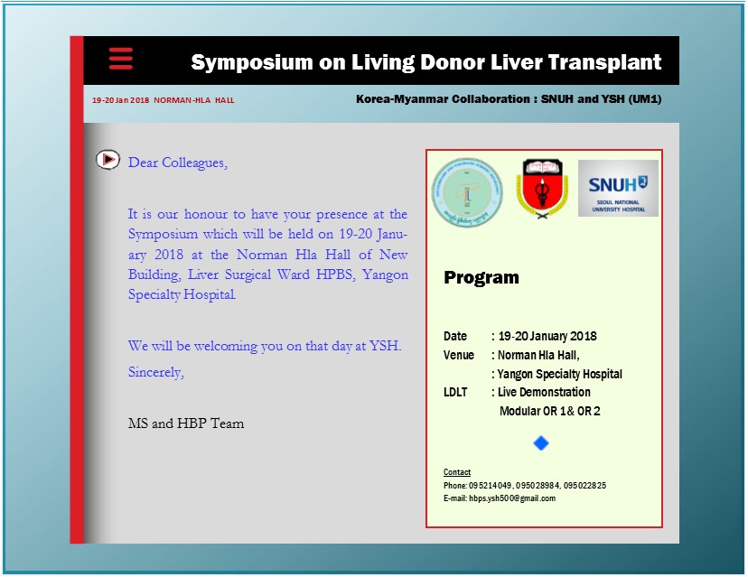 The Myanmar HBP department was founded on 1st January 2014 at Yangon Specialty Hospital, Yangon, Myanmar.