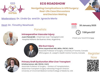 Join us for the IHPBA Early Career Group Roadshow Webinar: Navigating Complications in HPB Surgery Real-Life Case Discussions and Decision-Making. January 30 at 7.00 PM EST