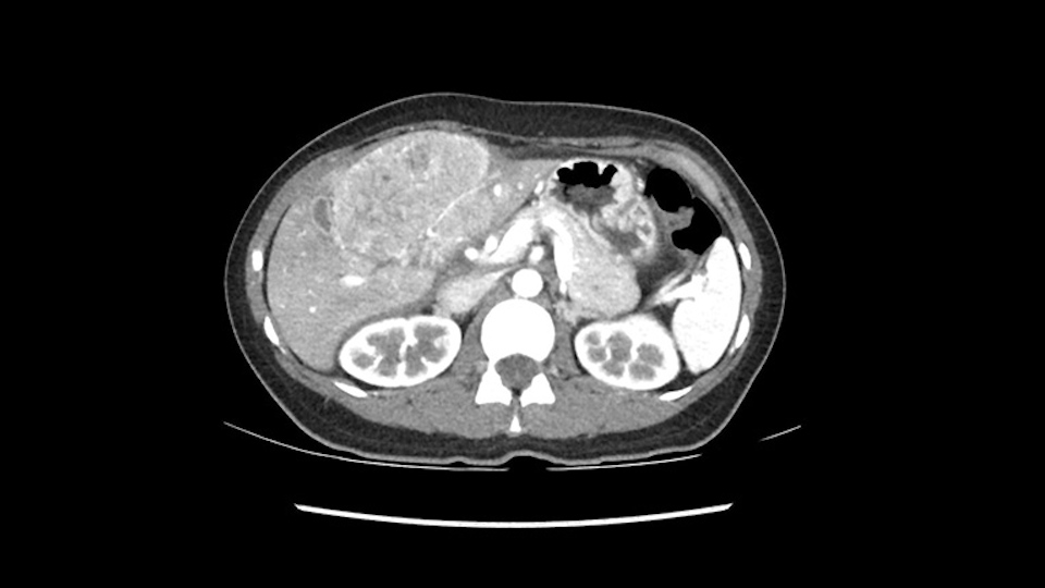 Hi my name is Steven Gallinger. I’m professor of surgery at the University of Toronto and a hepatobiliary and pancreatic surgical oncologist at the University Health Network. This patient is a 41-year old who we saw recently with chronic Hepatitis B who is untreated and noticed a protrusion in her upper abdomen and after a series of investigations was found to have this hypervascular liver lesion. Her alpha fetoprotein was about 26000 so the diagnosis really wasn’t in question. Although we did review the diagnostic imaging at our tumor boards last week and the consensus was that this is a hepatoma. The patient had good liver function, actually perfect liver function biochemically. Considering the location of this lesion and her age and alternative treatments, we felt that resection would be the best approach for this tumor.