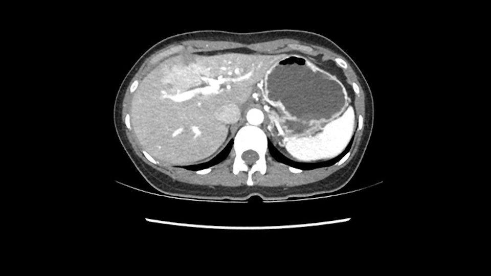 My name is Gonzalo Sapisochin. I’m an assistant professor of surgery at the University of Toronto and a hepatobiliary and pancreatic surgical oncologist here at the University Health Network. So this patient has a big mass, likely growing from the left lobe of the liver, around 9-10 cm.