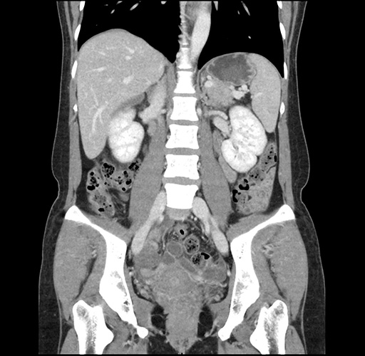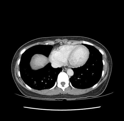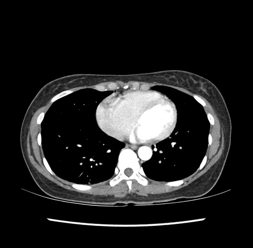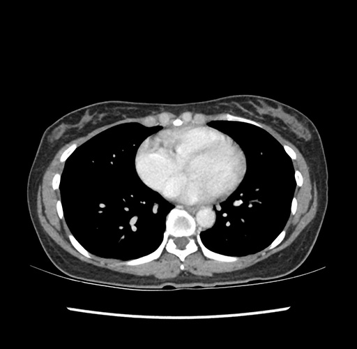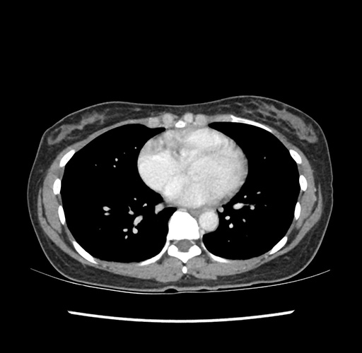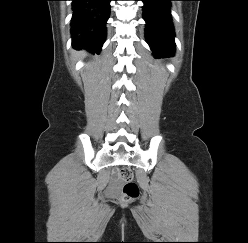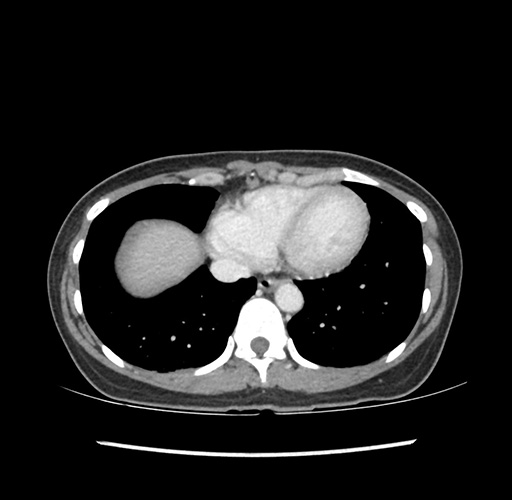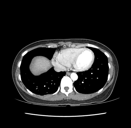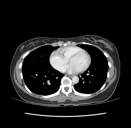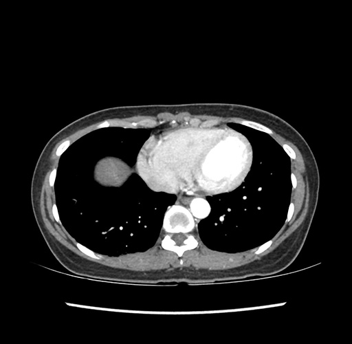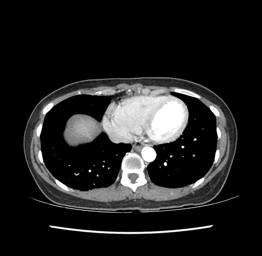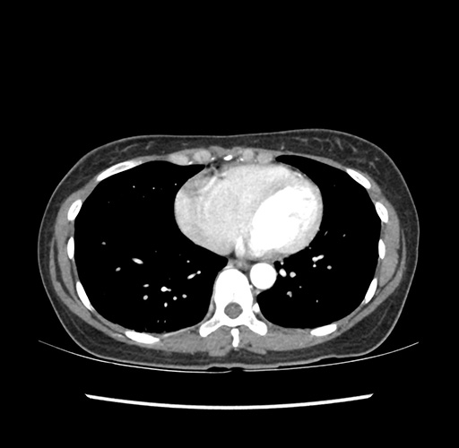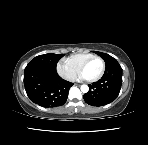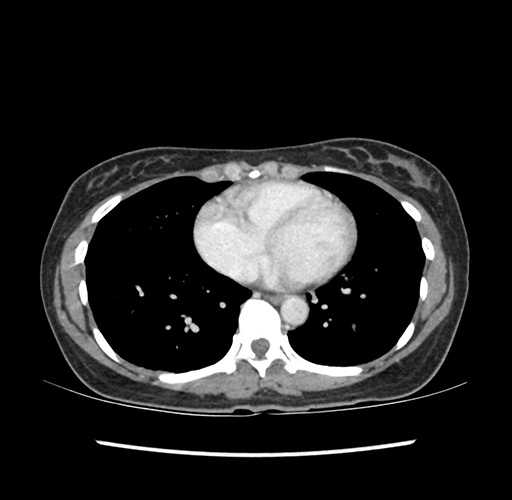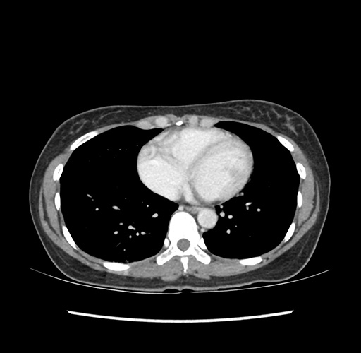 Look through the patient's CT scan to identify any areas of concern for the necessary procedure.
