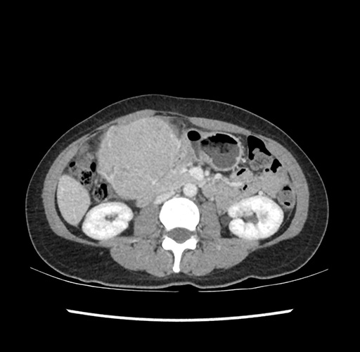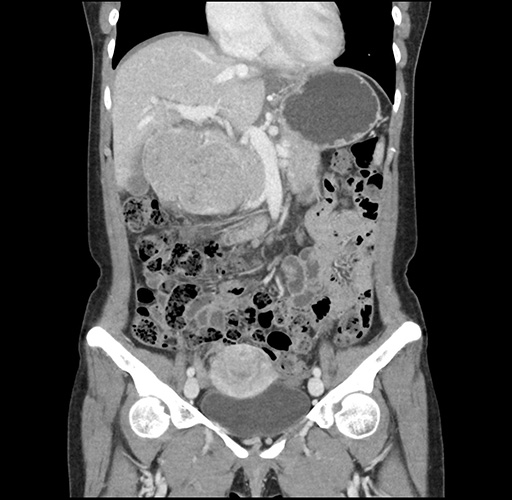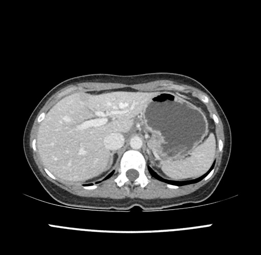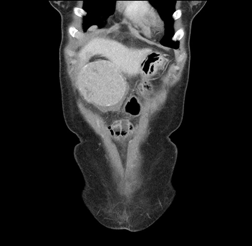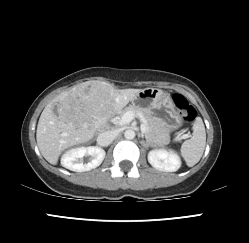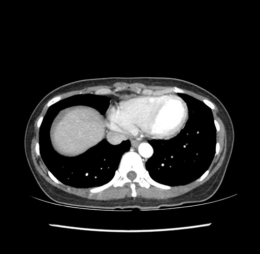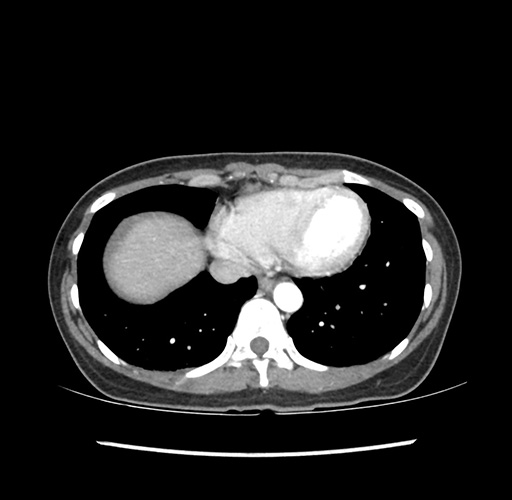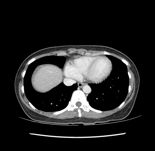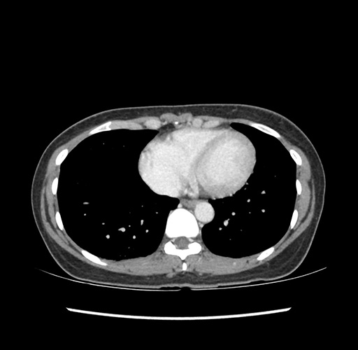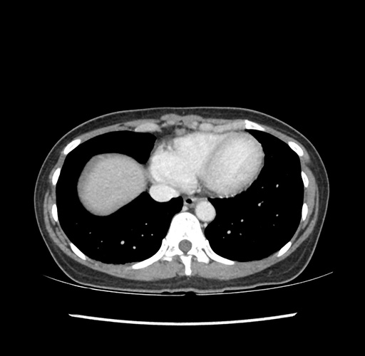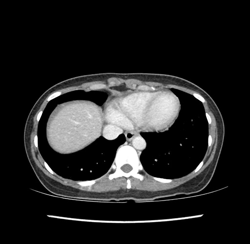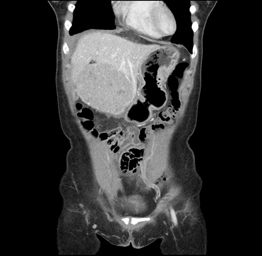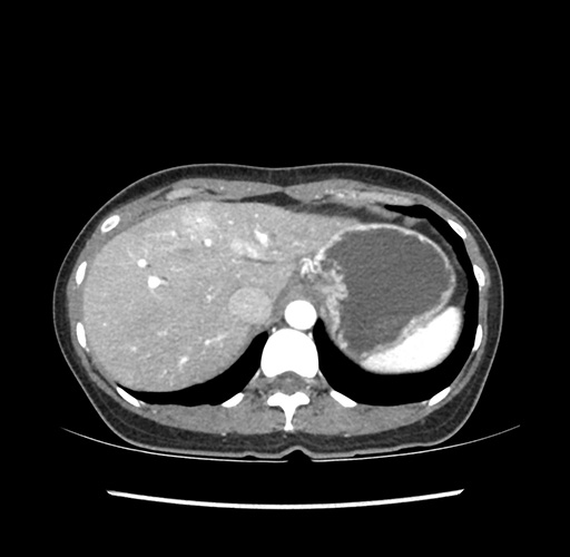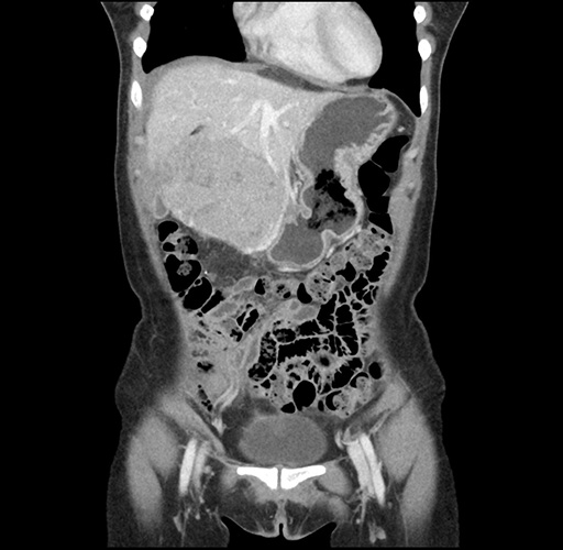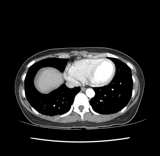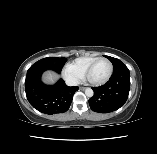Look through the patient's CT scan to identify any areas of concern for the necessary procedure.